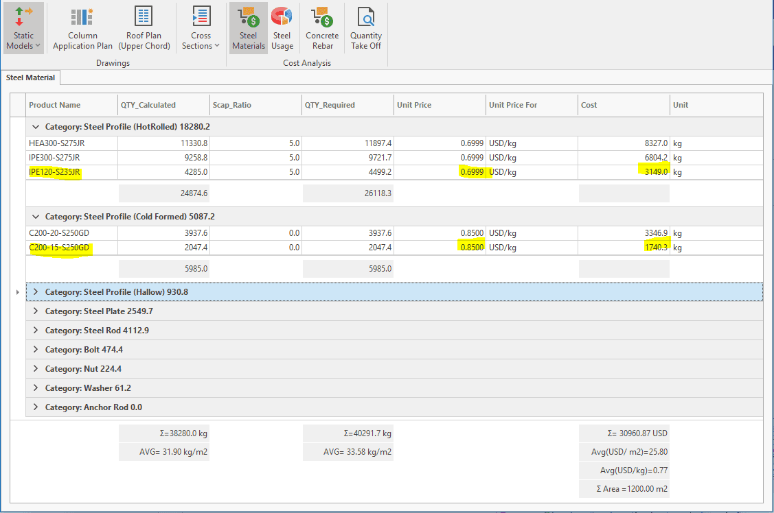 The economics of a steel structure are dependent on the quantity of materials used and the required labour time.