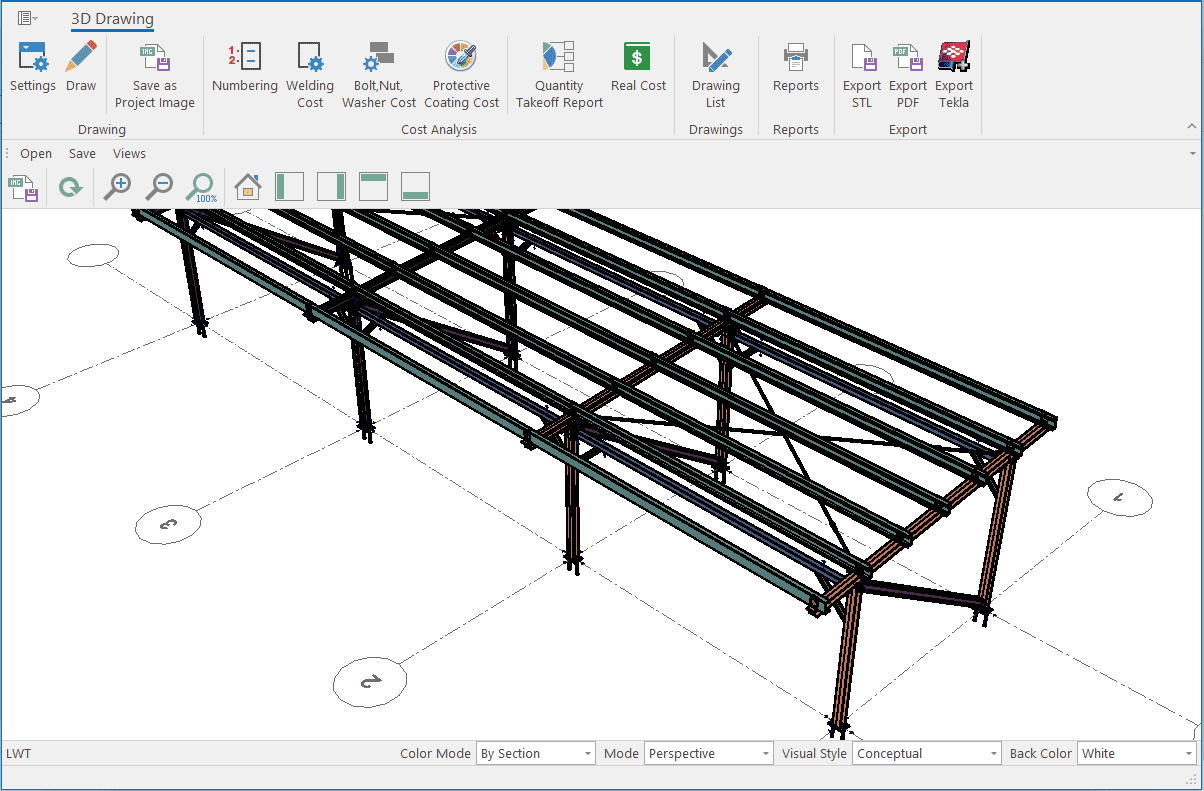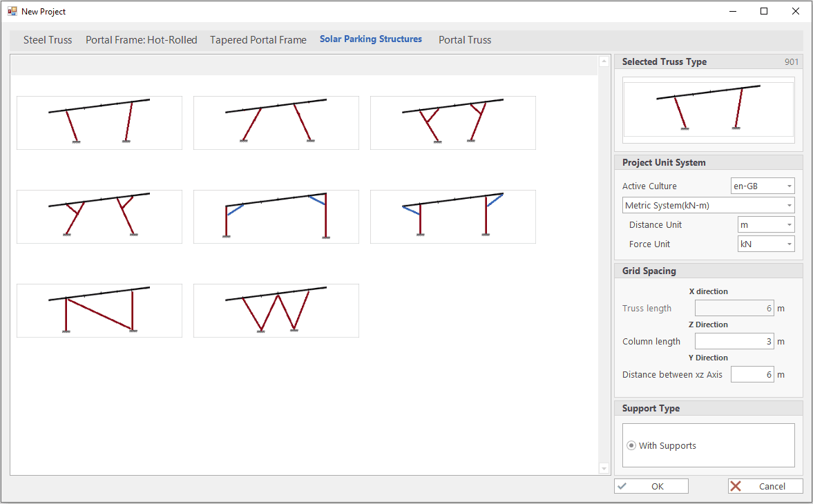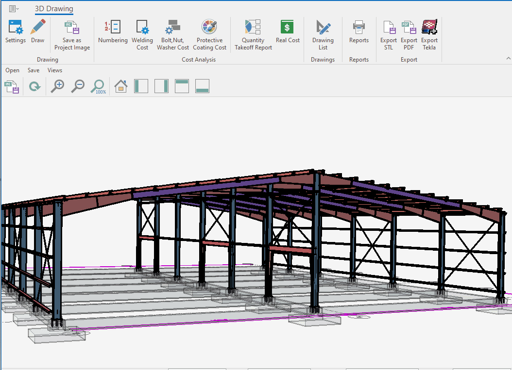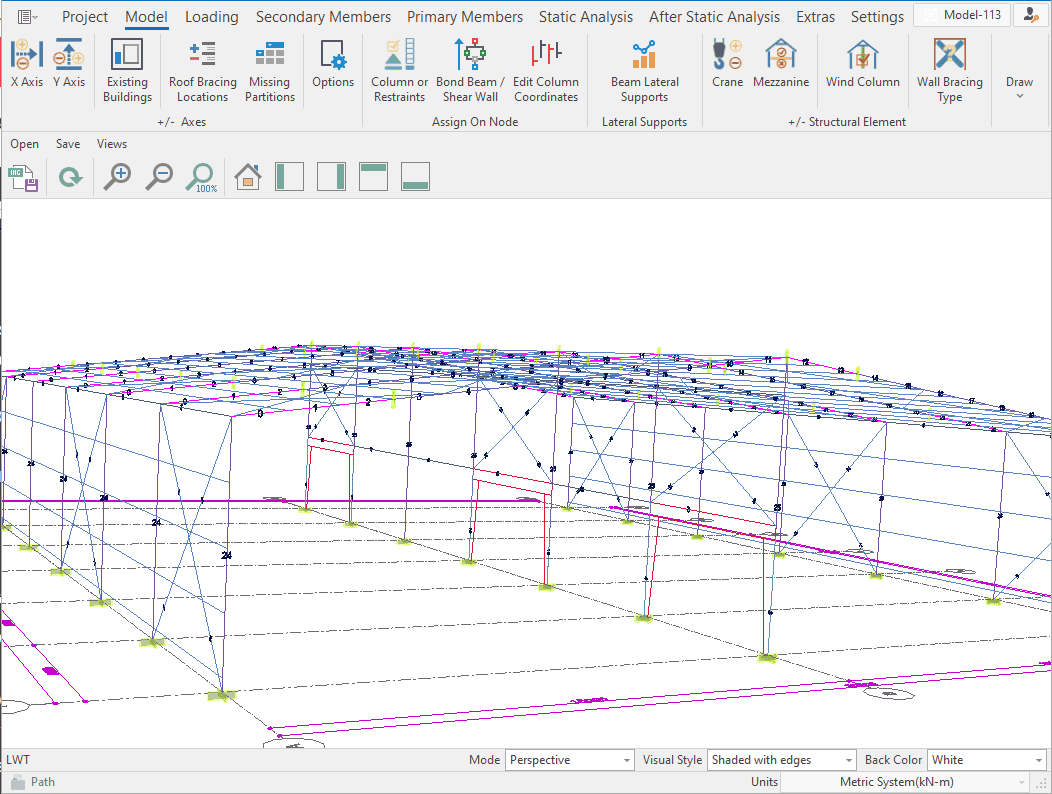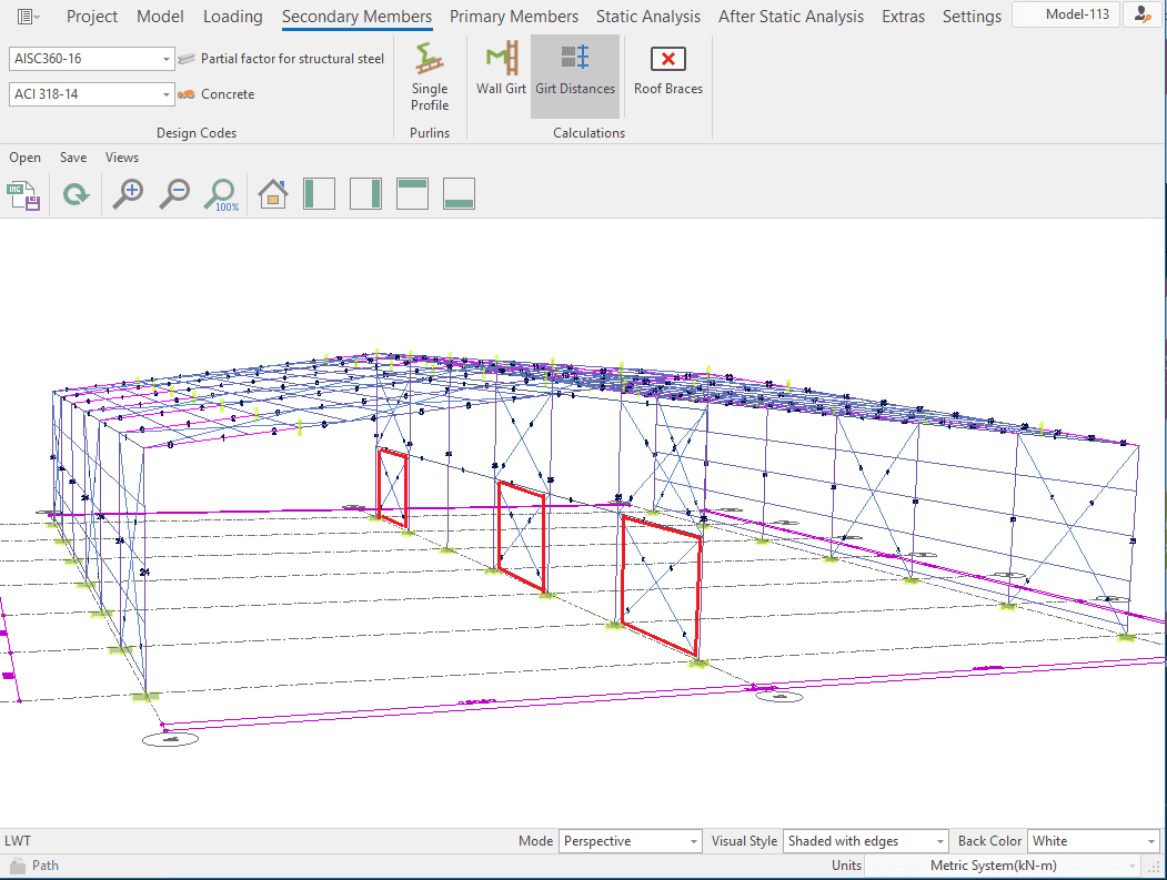 The single-storey steel warehouse structure has wind columns on the front and rear facades. And this axis receives less snow and wind load than the intermediate axis. Therefore, savings can be made by using smaller sections in the axis. Today, many PEB manufacturers have adopted this method. This feature has been added to MkaPEB so that you have no difficulty in competing with these companies.