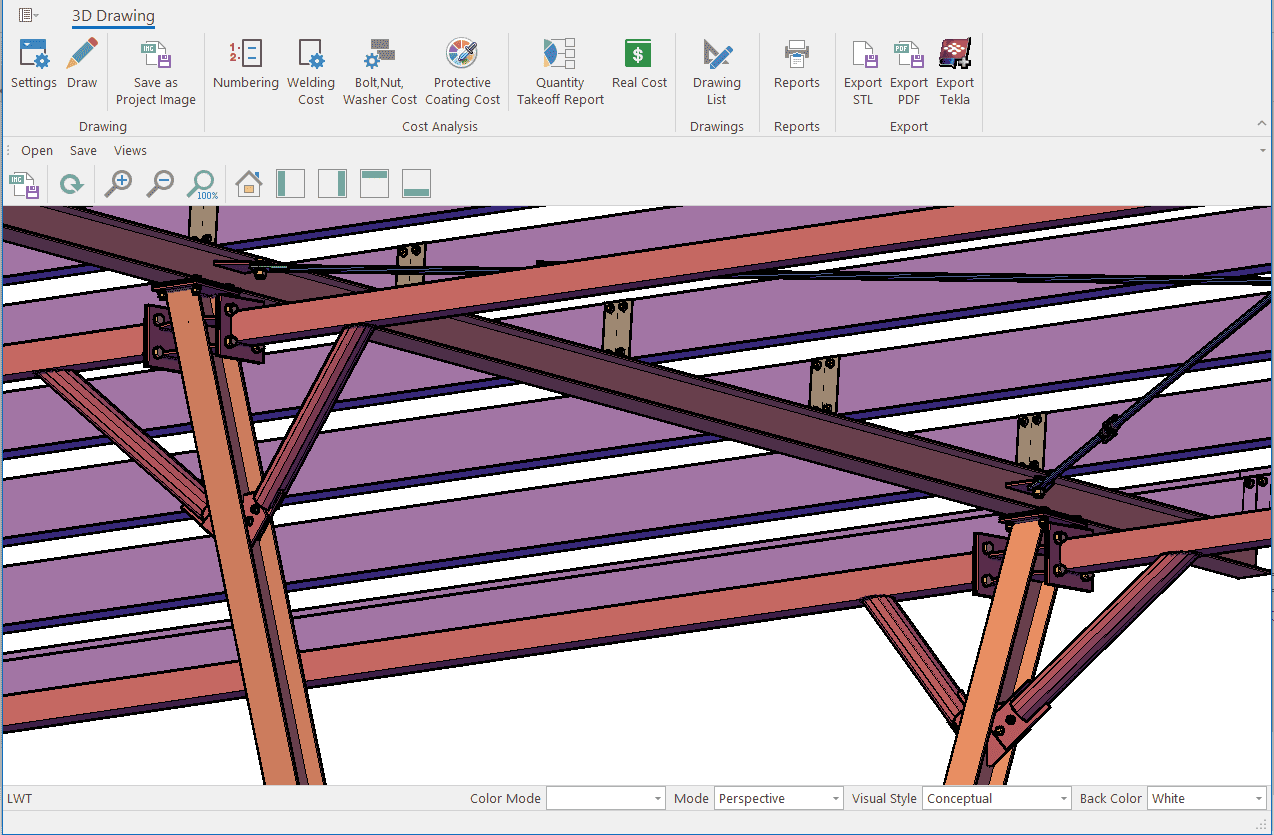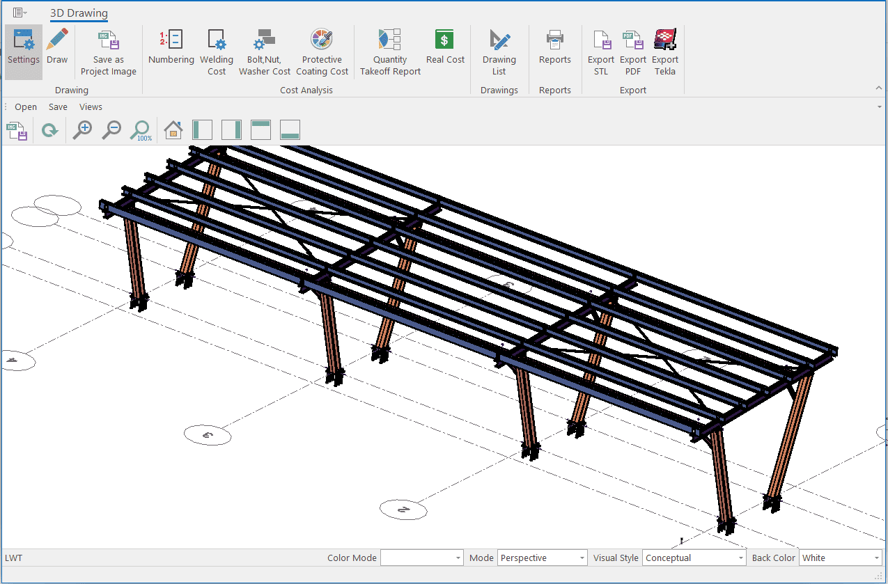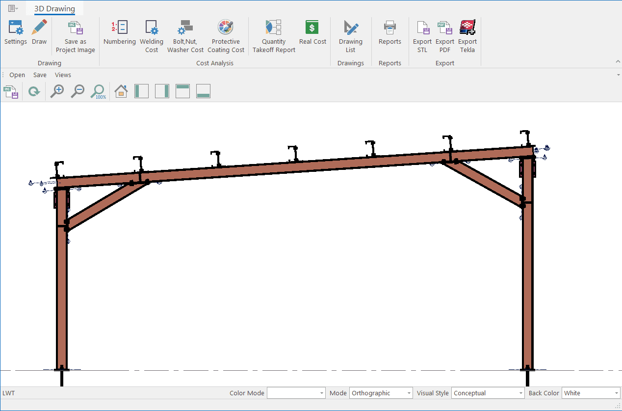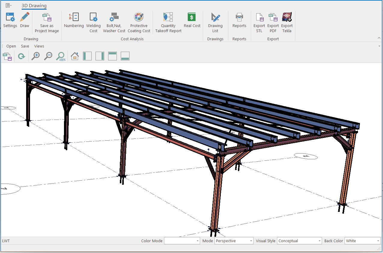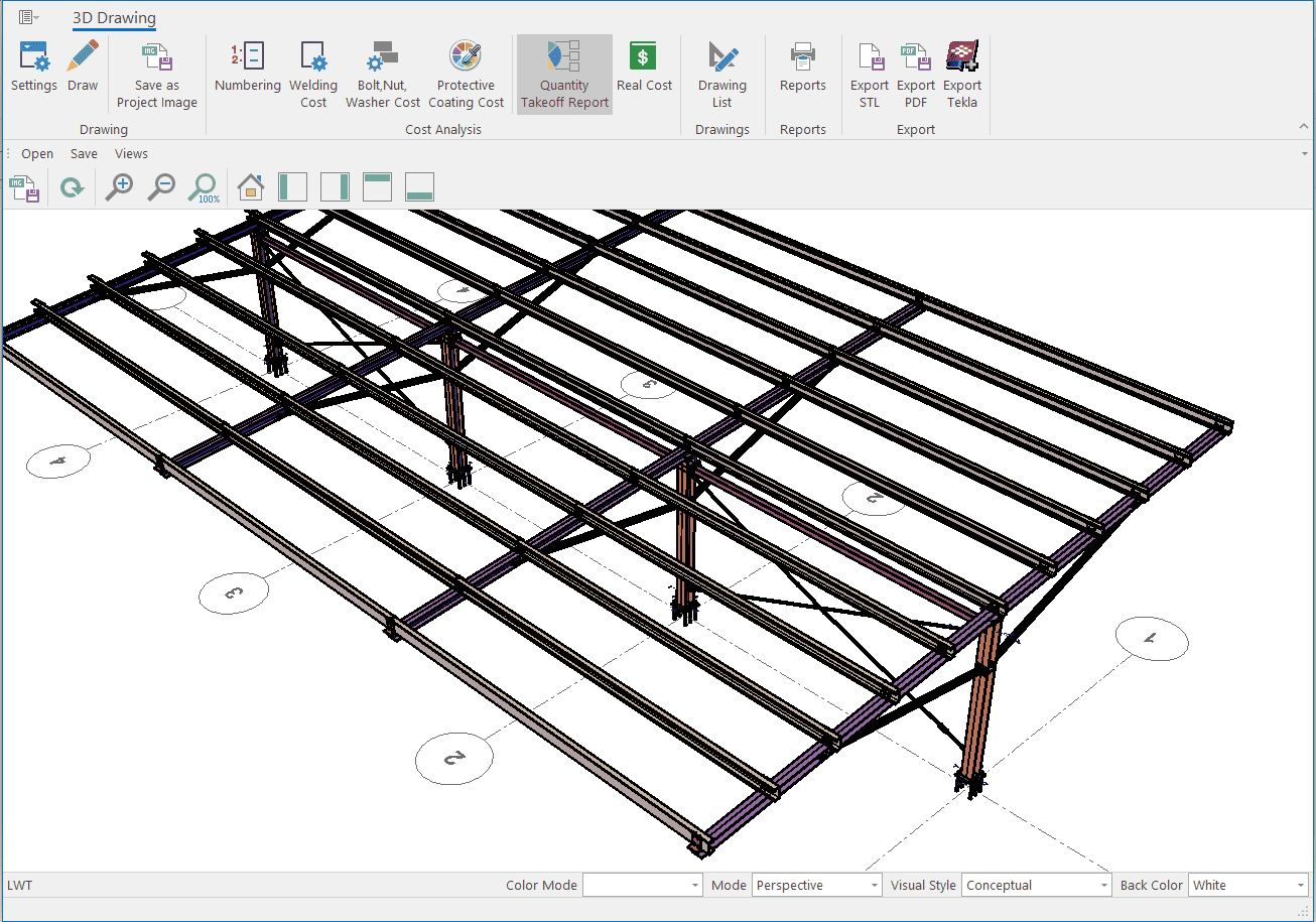 The single-storey steel warehouse structure has wind columns on the front and rear facades. And this axis receives less snow and wind load than the intermediate axis. Therefore, savings can be made by using smaller sections in the axis. Today, many PEB manufacturers have adopted this method. This feature has been added to MkaPEB so that you have no difficulty in competing with these companies.