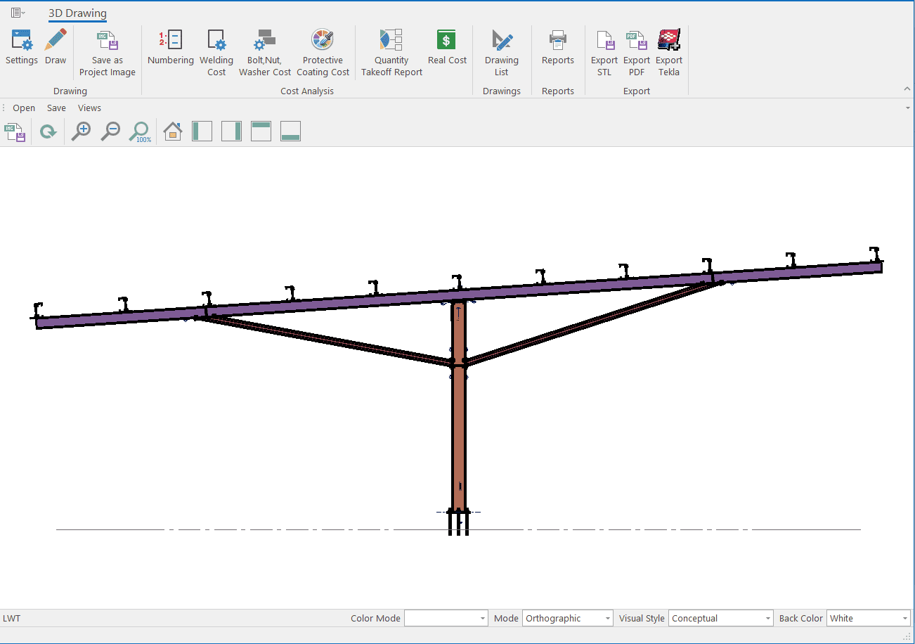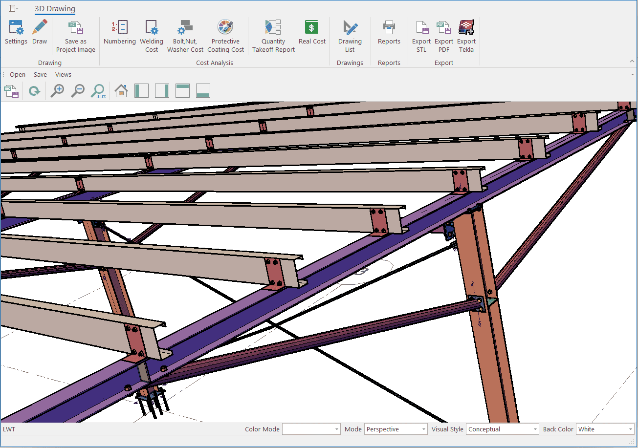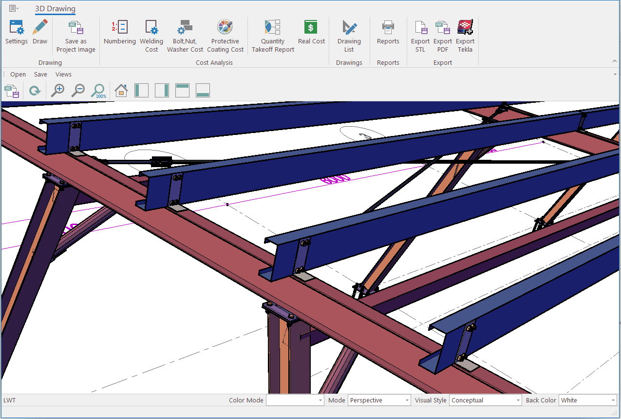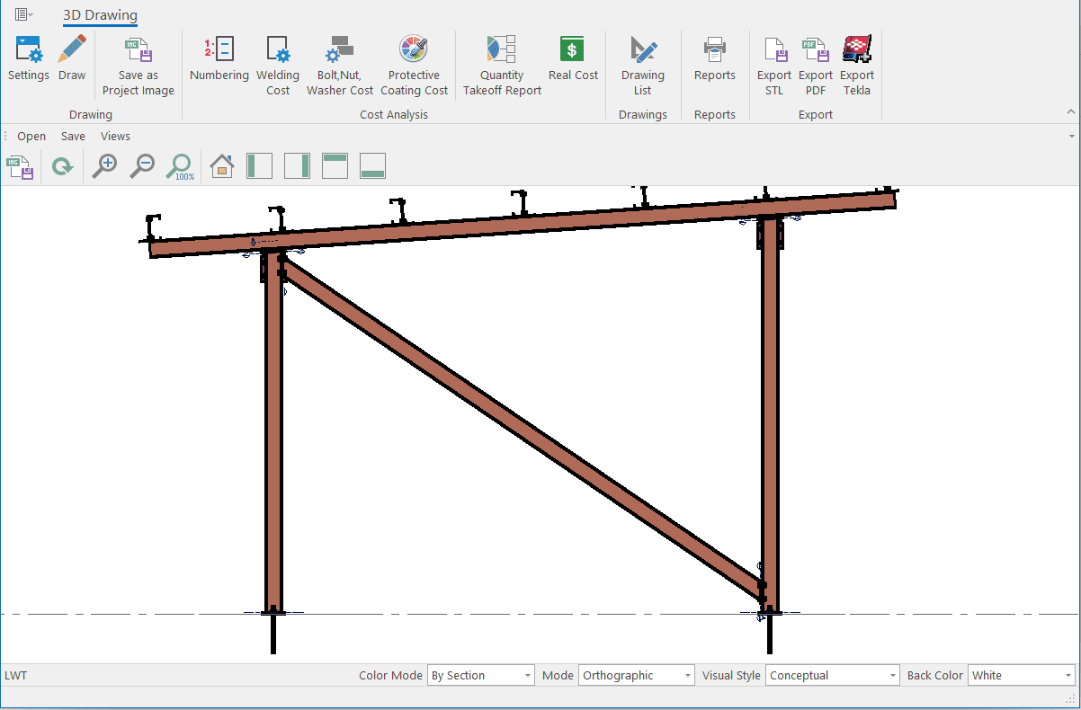 The single-storey steel warehouse structure has wind columns on the front and rear facades. And this axis receives less snow and wind load than the intermediate axis. Therefore, savings can be made by using smaller sections in the axis. Today, many PEB manufacturers have adopted this method. This feature has been added to MkaPEB so that you have no difficulty in competing with these companies.