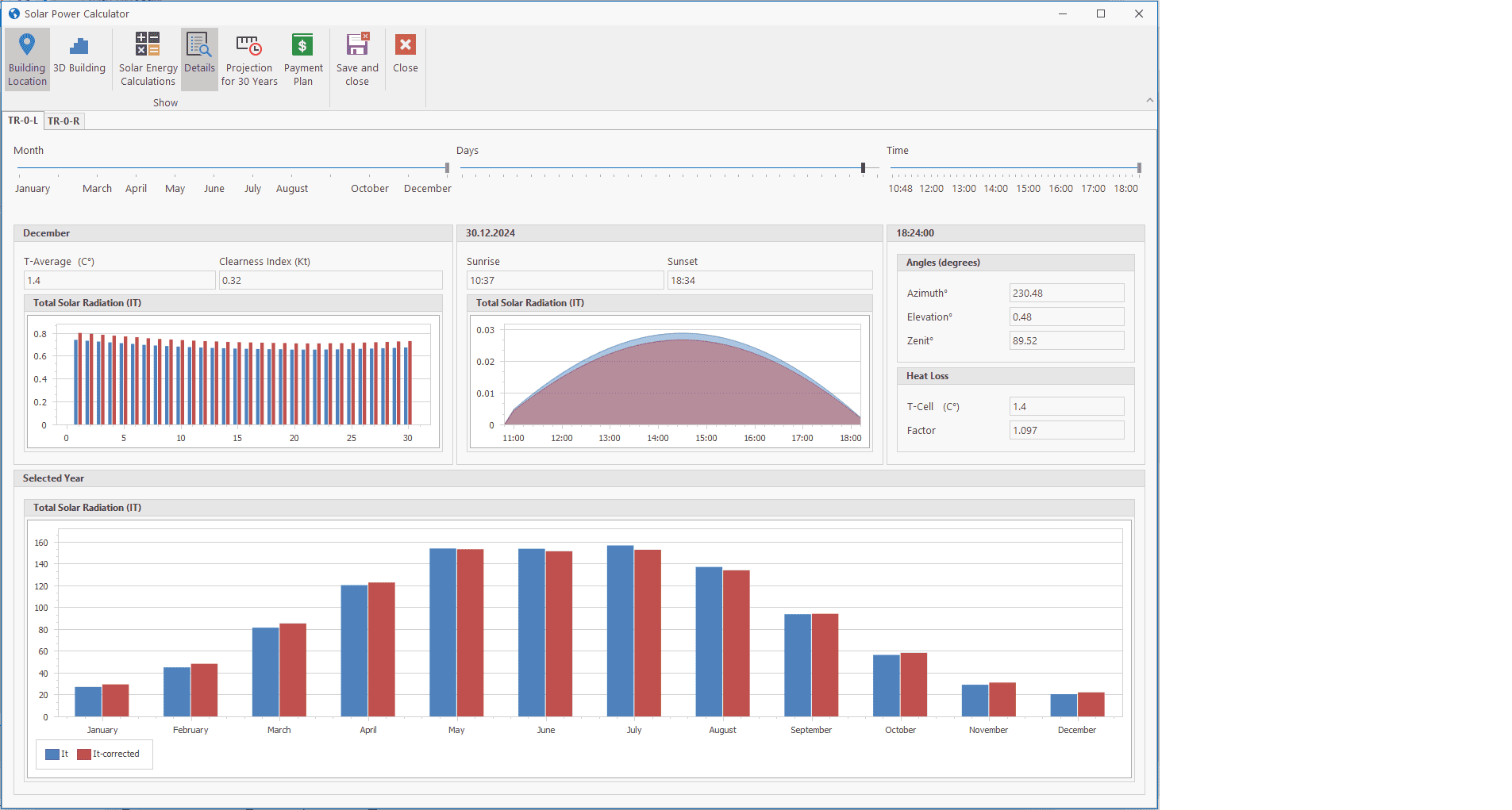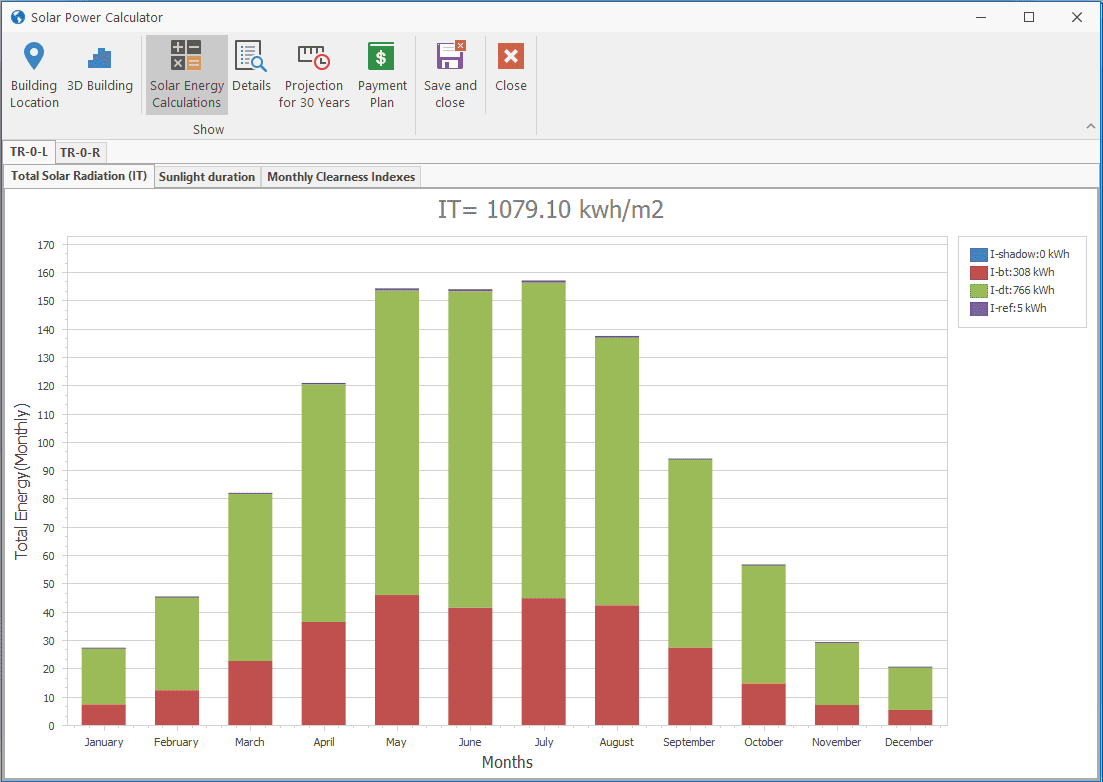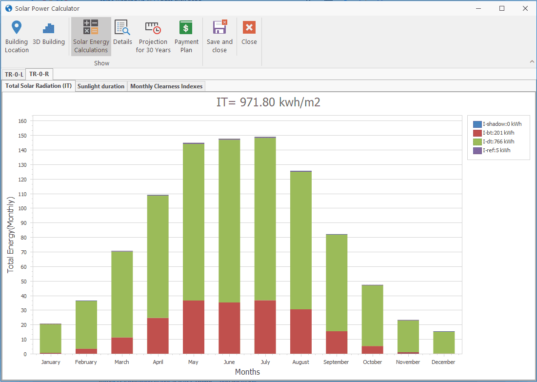 Step-6: A very complex calculation is made here. Sunrise and sunset times are calculated for each day. During this time period, the angle of the sun with the panels is calculated for every 12 minutes. Monthly celearness index data is calculated specifically for the coordinates where the building is located. The efficiency change in the panels is calculated using NASA monthly average temperature data. At the end of this complex process, the amount of solar radiation is determined by month.