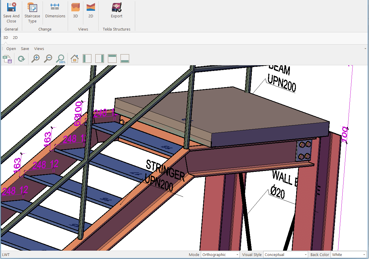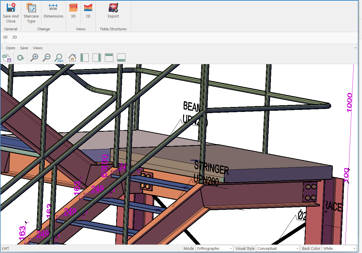 The height of hangar-type buildings has increased recently. While the typical building height used to be around 6 metres, there are now an increasing number of buildings exceeding 9 metres. The construction of two floors for office or storage purposes is now a viable option. Modelling the second mezzanine floor with Mkapeb is a solution that can be provided to meet this need.